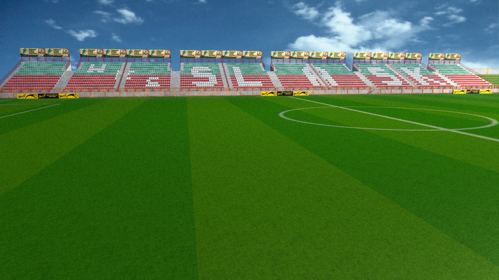 Ultra szybka wizualizacja stadionu. Chodziło o umieszczenie w środowisku stadionu różnych form reklamowych dla Wrocławskiego browaru. Wszystkie plakaty i bilbordy zostały zaprojektowane przez agencję reklamową. Moje zadanie polegało na stworzeniu stadionu oraz kilku nośników reklamowych. Następnie gotowe projekty reklam umieszczałem na bilbordach i renderowałem. Praca była sporym wyzwanie ze względu na bardzo małą ilość czasu na stworzenie całości oraz na brak dokumentacji stadionu.