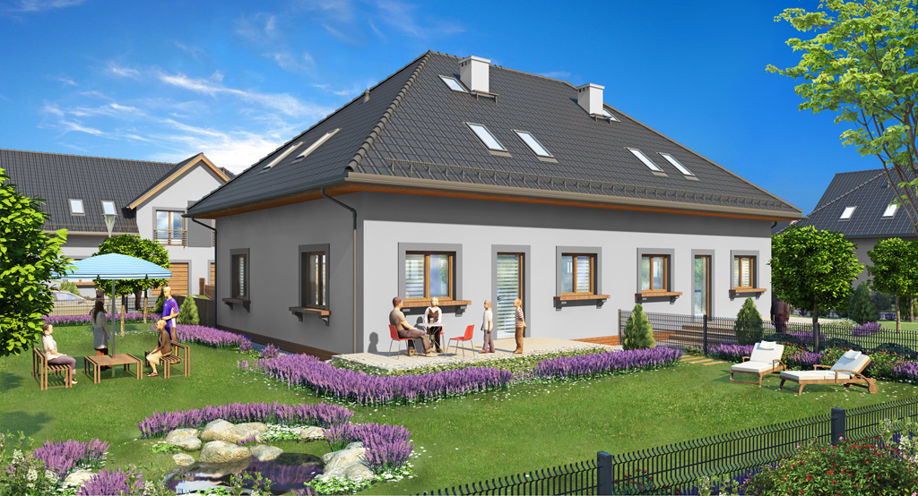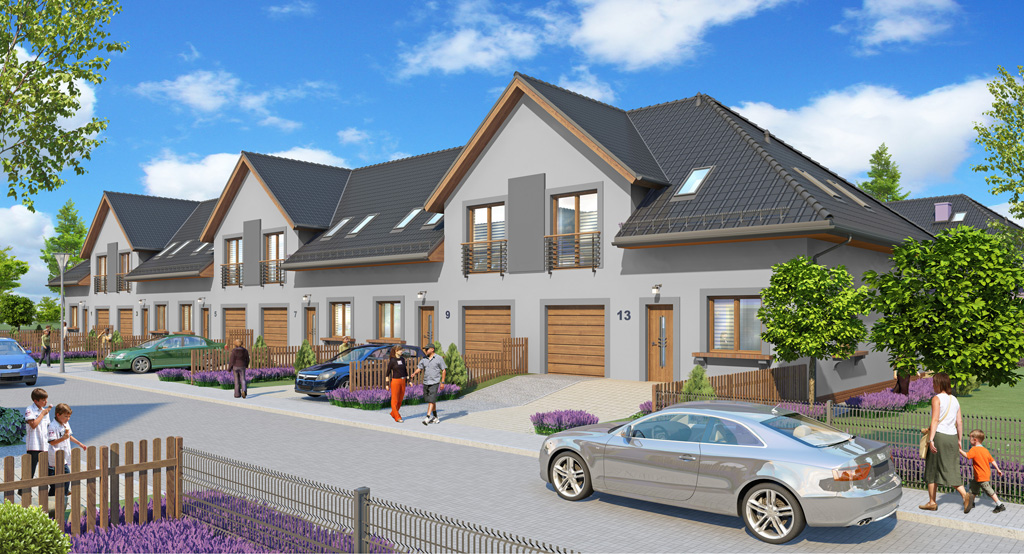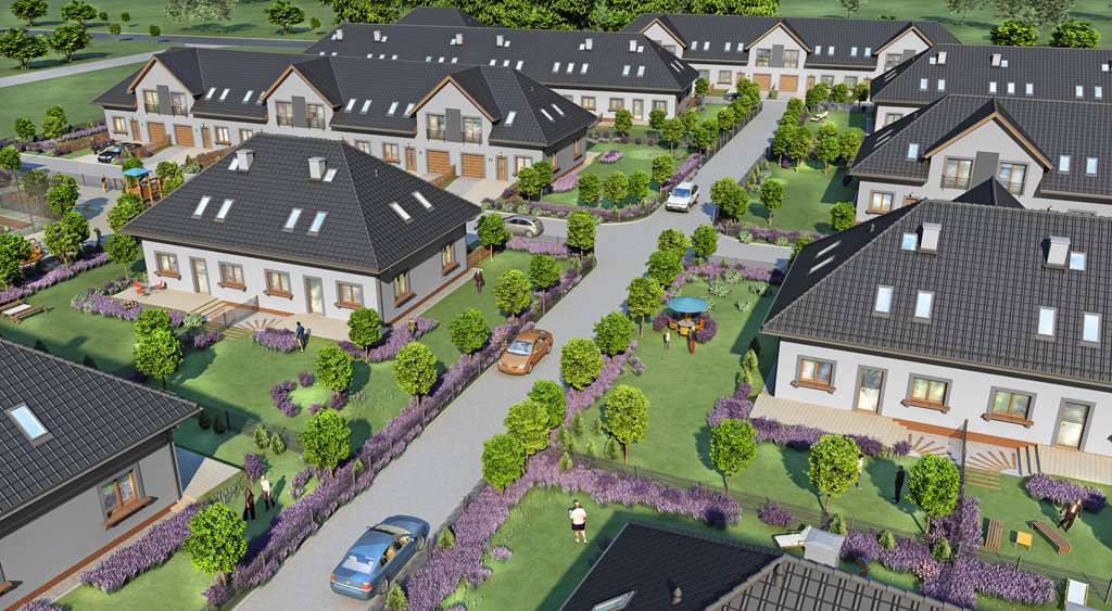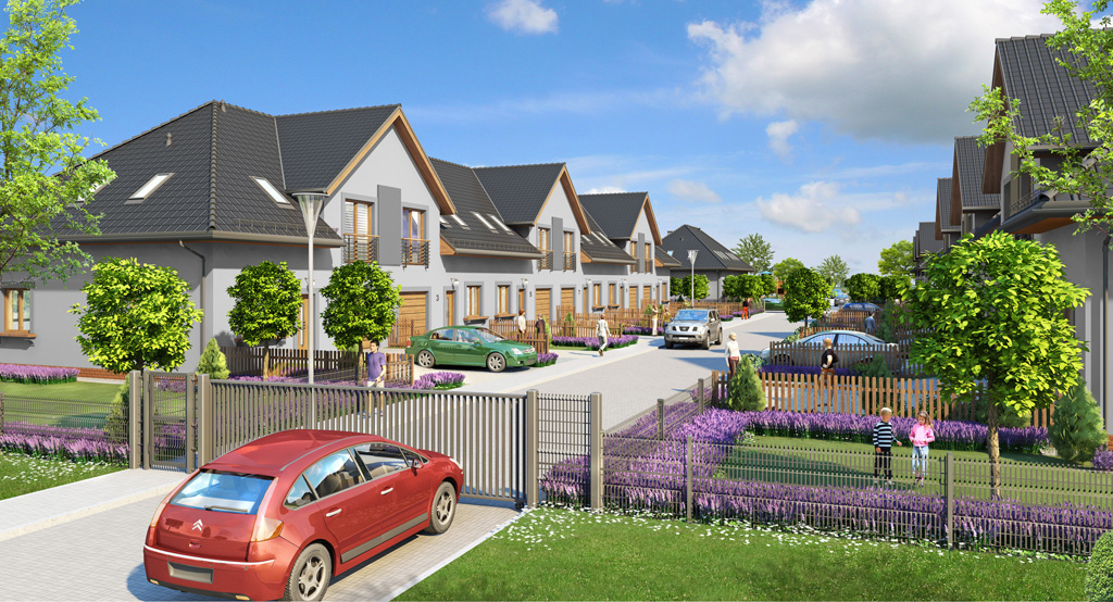 Współpraca (modelowanie) przy wykonaniu wizualizacji osiedla domów jednorodzinnych "Lawendowe Przedmieścia" w Wojkowicach.