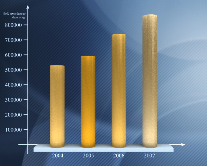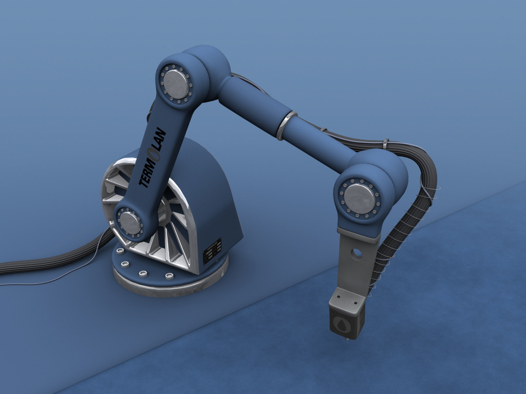 Praca dla firmy Termolan. Animowane ramie robota miało zostać wykorzystane jako tło w DVD prezentującym ofertę firmy. Animacja przedstawiała możliwość precyzyjnego nanoszenia kleju na obiekty znajdujące się na taśmie.